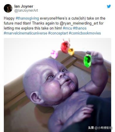 漫威概念设计师伊恩·乔伊纳与瑞恩·迈纳丁分享了这个《复联4》最大的反派灭霸婴儿时期可爱的模样,看到灭霸婴儿的样子,谁也想不到他会是《复联4》最大的反派。漫威的视觉开发主管表示,漫威最初想追踪灭霸的生活,这也是为何他们制作了婴儿到老年的灭霸视觉图片。