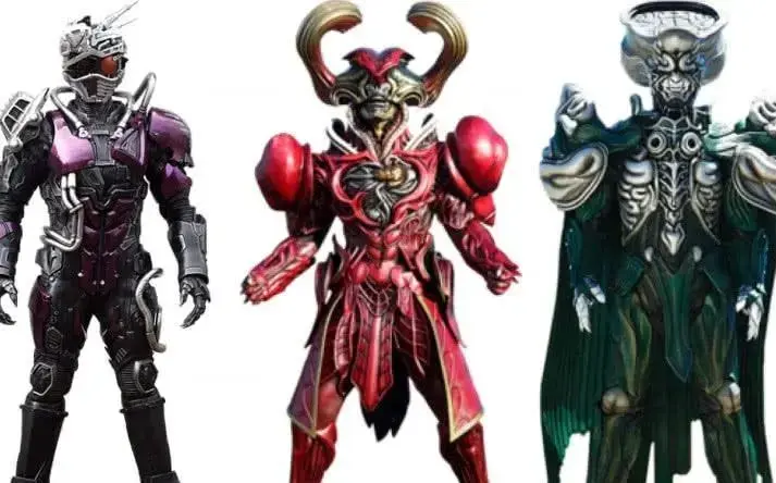 昭和骑士的设计原型一直秉持着以蝗虫、蜻蜓为蓝本的思想,有着标志性的复眼和触角。除了这些,昭和和骑士的亚马逊以蜥蜴为原型,stronger的原型是甲虫,总之就是万变不离其宗。到了平成,假面骑士空我开始求新求破,虽然还是以昆虫为原型,但是还能从其中看出加了很多创新的细节。从亚极陀开始,假面骑士的设计原型开始多元化。西方龙,东方龙,鲨鱼,其他昆虫等等,新十年的假面骑士开始加入了融合的理念,w,ooo,build和铠武都有融合的元素。