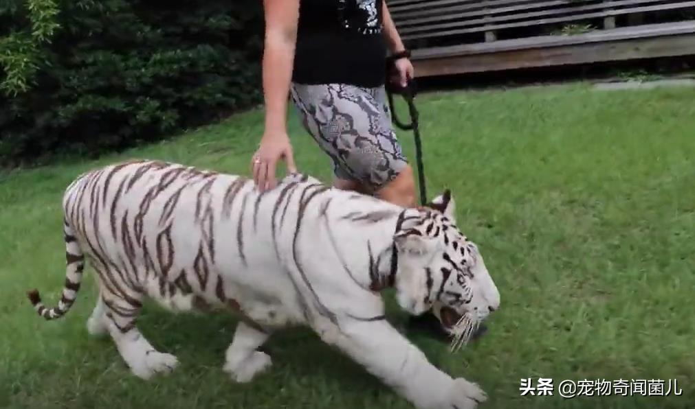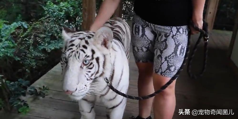 在国外就有这样的一个妹子,她就是不爱养猫狗,却偏爱大老虎,尤其是白色纹路的,看起来特别霸气,这个嗜好,估计让人不寒而栗吧。老虎在我们的印象中,可是非常凶猛的,只要人类敢靠近,等于一只脚踏进鬼门关了,运气好点的话,就是他吃饱了,但是人家也会玩死你。所以你敢想象这样一个大家伙被人当宠物养着?