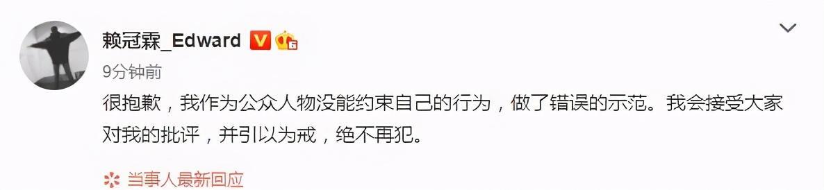 就在这一幕曝光后不久,赖冠霖本人火速在社交平台上发文道歉:“很抱歉,我作为公众人物没能约束自己的行为,做了错误的示范。我会接受大家对我的批评,并引以为戒,绝不再犯。”粉丝们也没有一味维护赖冠霖,纷纷斥责赖冠霖需要为自己的行为去负责,心疼环卫工人的不容易之处。