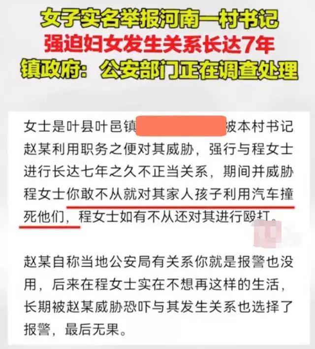 河南女子遭村支书强奸七年,对其进行威胁恐吓,网友:禽兽不如