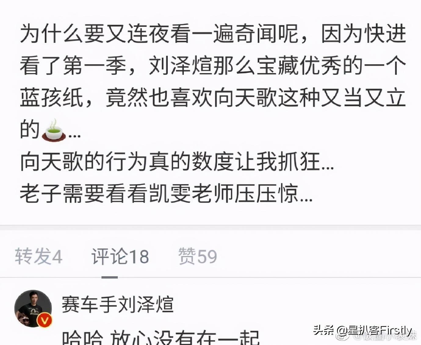 本来就是吃瓜网友的臆测,结果刘泽煊本人在这条微博下回复:哈哈,放心,没有在一起。这句富有内涵性的话,直接被网友骂了。