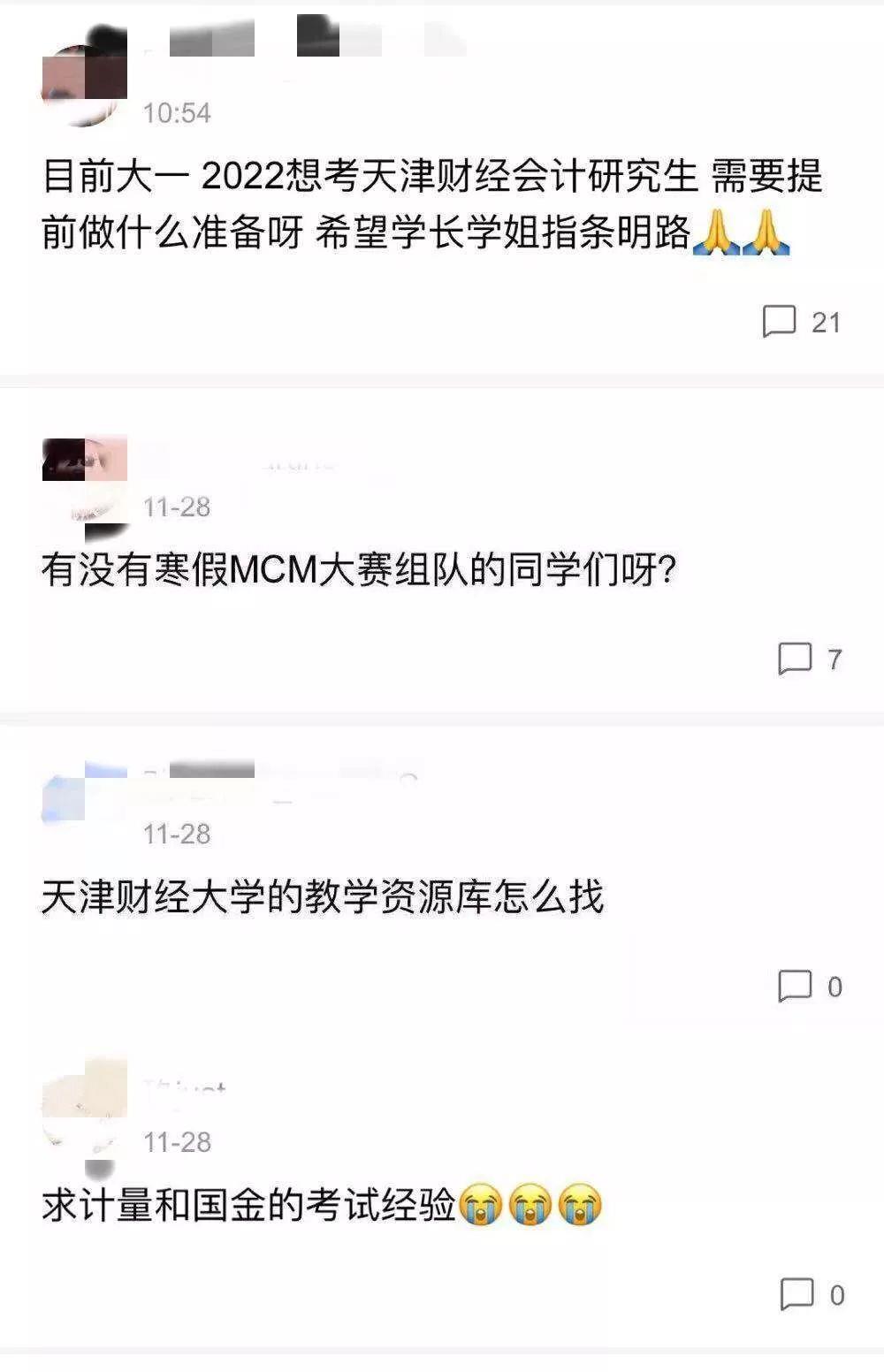 你点开精华,看到“天财action话剧社安排上了”,知道这里有一群热爱表演又温暖有趣的人;看到“大四老学姐的回忆录”,看看要毕业的学姐说说自己四年的天财年华,她告诉你自己也因为没挂蚊帐被蚊子咬过,也告诉你大学四年要做什么,关于考试,关于实习,关于考证;看到“关于预报到的国际工商学院的科普”,你知道了ACCA、CFA、CIMA都是什么;你能看到关于留学的帖子,下面几百条的留言,大家一起讨论国家的选择、费用的多少;你还能看到入党、小黄车、关于四大、证券公司、汉服社、民乐团、苏醒话剧社……