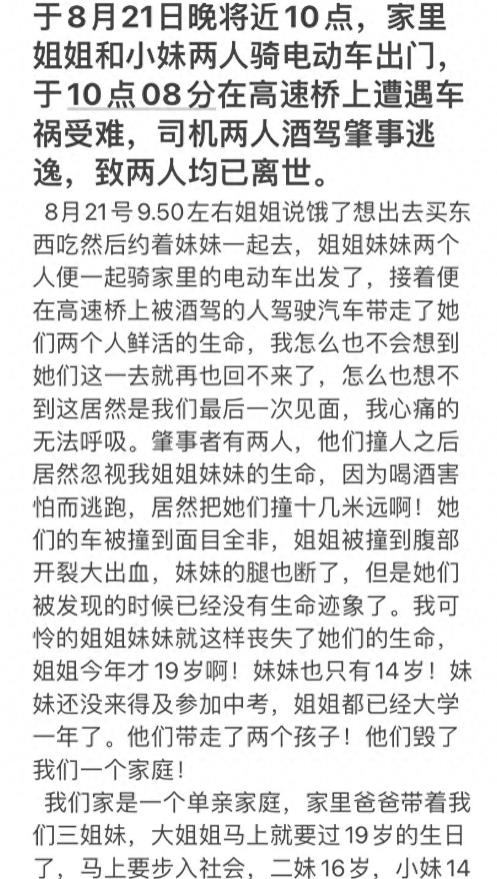 让我们铭记这起悲惨的交通事故,同时也对那些为交通安全默默奉献的人表示敬意。希望这样的悲剧能够少一些,让我们的社会更加和谐与安全。愿逝去的两位姐妹安息,愿他们的家人能够找到平静和安慰。我们共同期待一个没有悲伤和遗憾的未来。