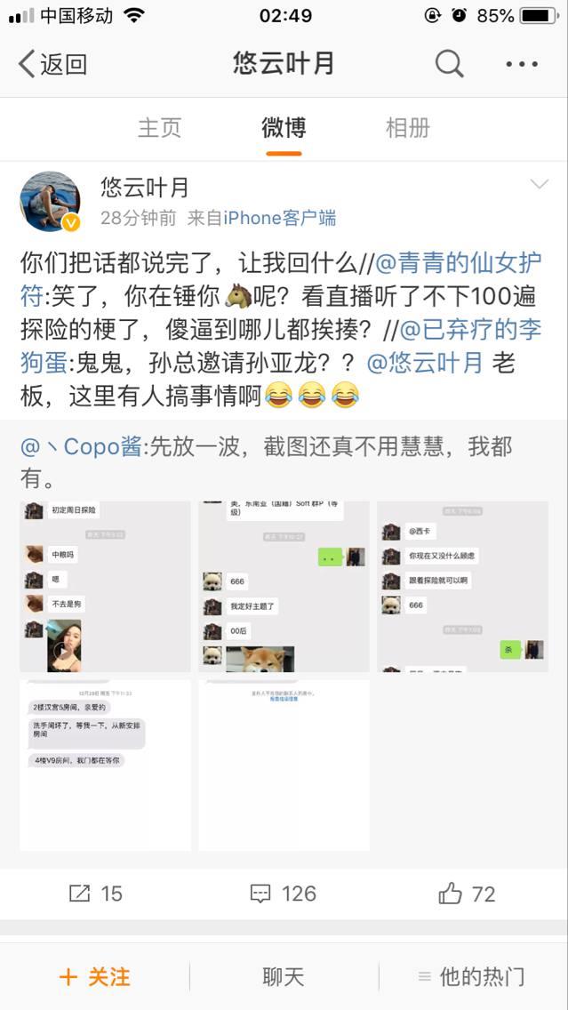 这消息一出瞬间就炸开了锅,之后更有网友实锤孙亚龙结婚前与七煌老总孙博文,西卡还有七煌去“探险”的聊天记录来转移大家的注意力。之后文的与孙亚龙也的确承认了,这段聊天记录的真实性。
