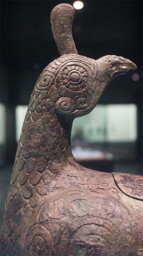 绿孔雀外表华丽,形象优雅,晋国人对于这种已经罕见的美丽大鸟,不免会产生神化的心理。因此在铸造作为宗室礼器时,很可能用绿孔雀作为了凤凰的形象。