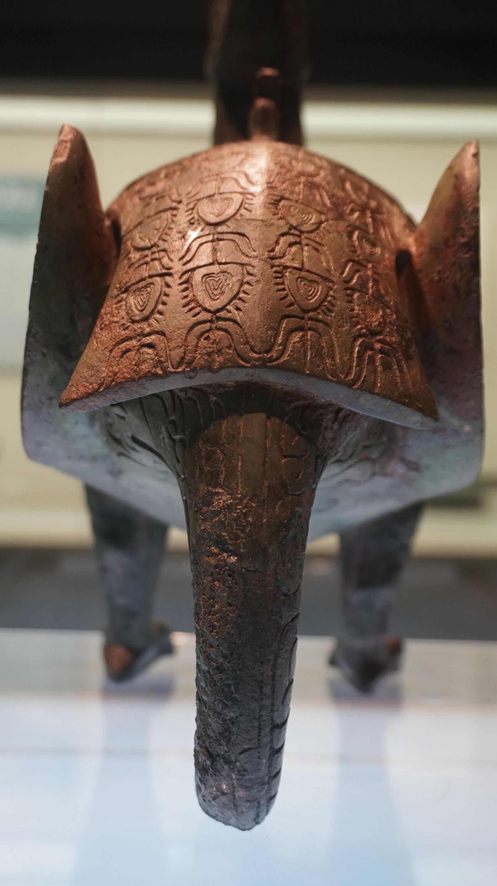 当然,鸟尊也有部分位置与绿孔雀不太吻合,比如象鼻状的尾部,与卷曲的翅膀,但这些部位,应该属于艺术化的夸张,因为就算是传说中的凤凰,也并没有象鼻尾。