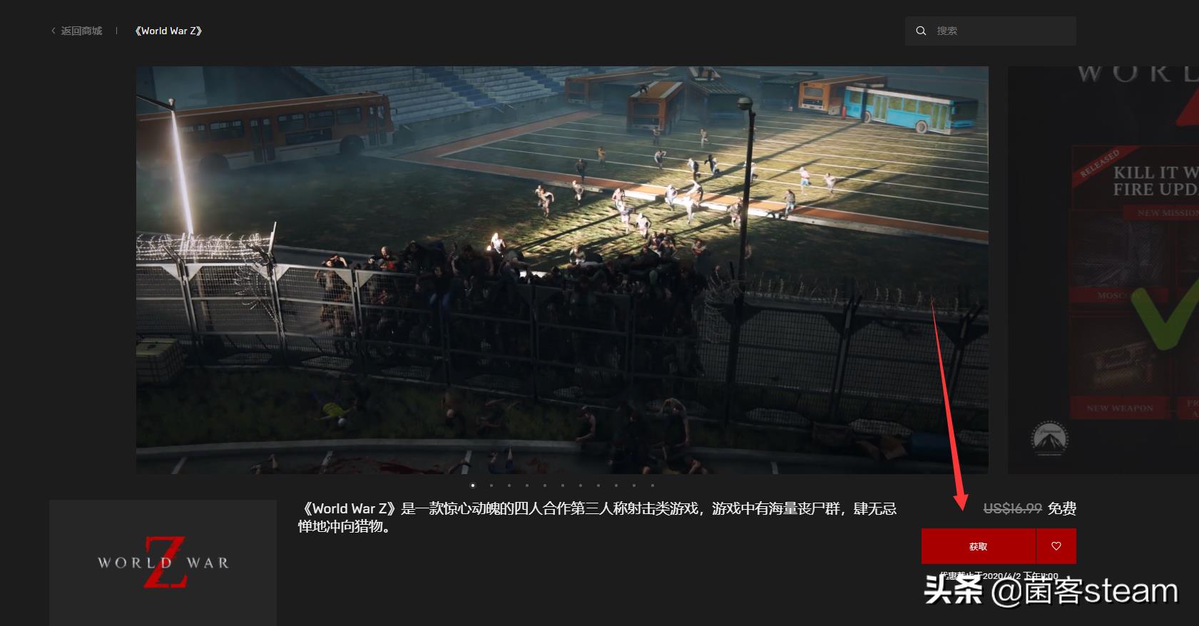 「僵尸世界大战」现时开放免费领取!添加入库后永久拥有