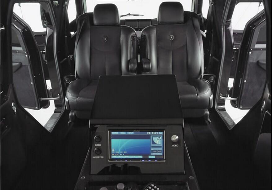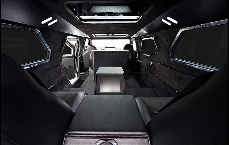 全车内饰配备豪华威尔顿羊毛地毯 驾驶座及副驾驶座六段电动调整模式,后排四座对座会议型全车共六座,皮椅安德鲁缪尔头皮革及整个超麂皮绒全手工制造,天窗隐私色调,配备防弹玻璃天窗,室内照明灯具,DVD导航和蓝牙设备,娱乐媒体系统装载14支高功率喇叭,民用红外热成像路径摄相机系统。