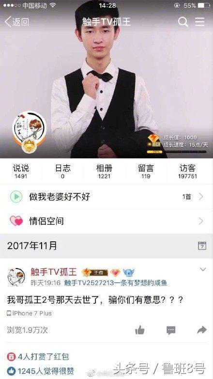 有人发现在主播孤王的QQ上说突然猝死去世了,这让不少玩家,特别是孤王的粉丝们大吃一惊!!!