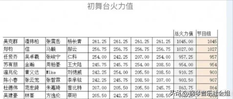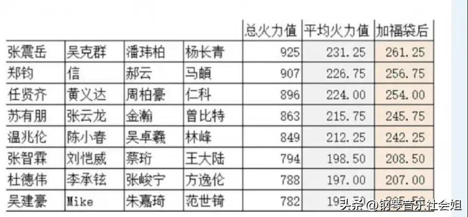 杜德伟部落火力值第七,火力值最低的哥哥范世錡和朱嘉琦都是205.5。