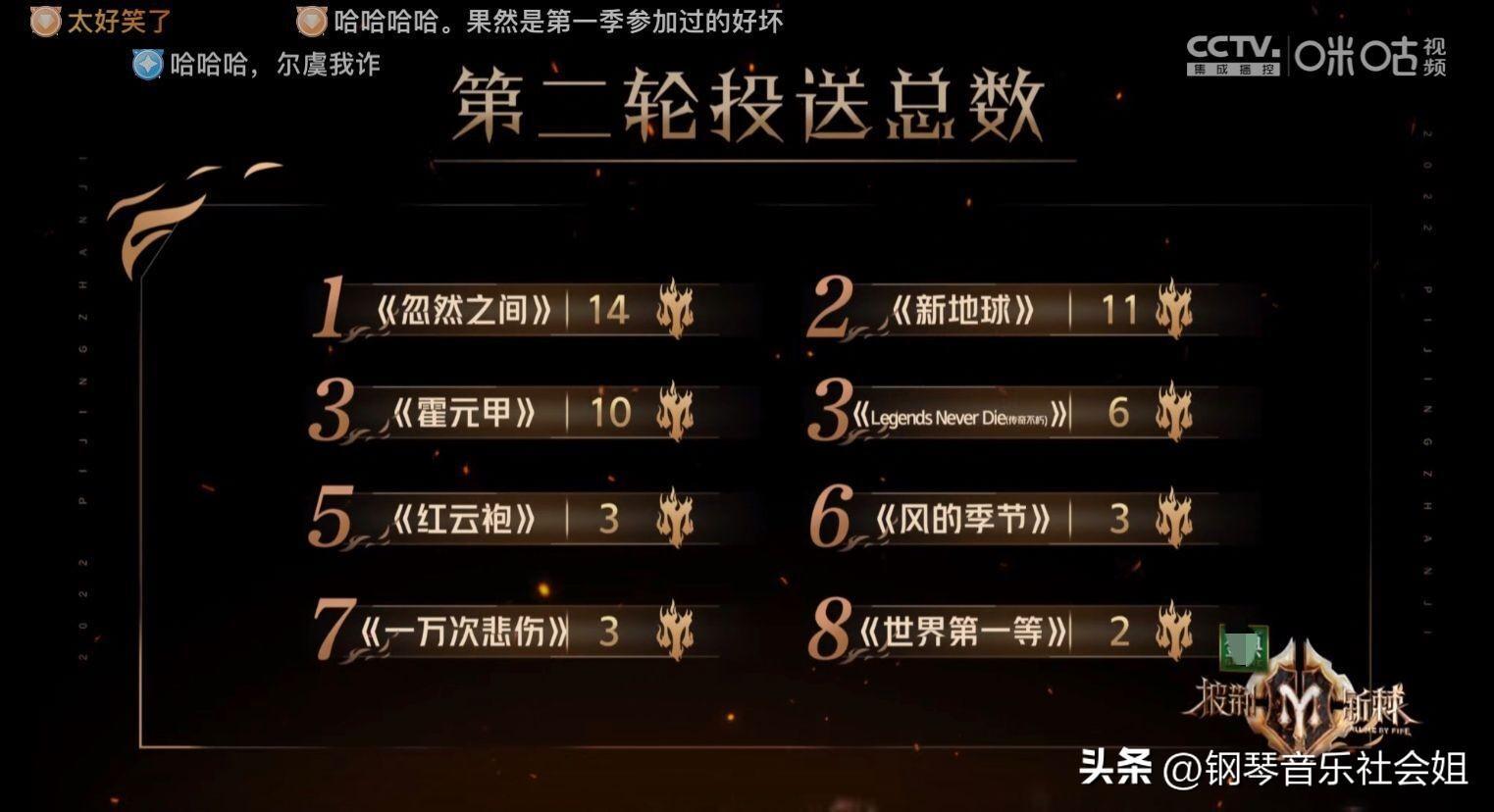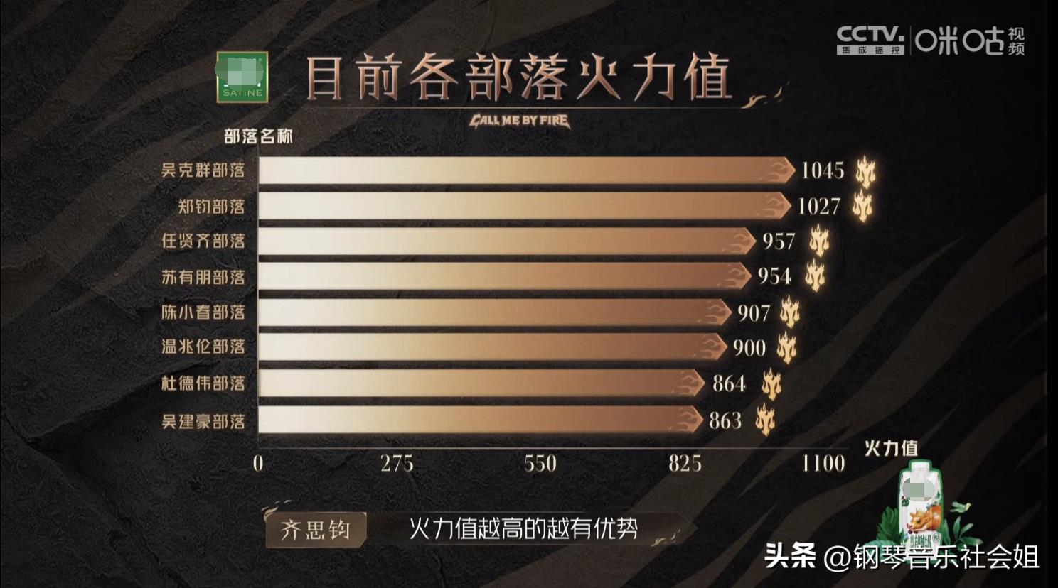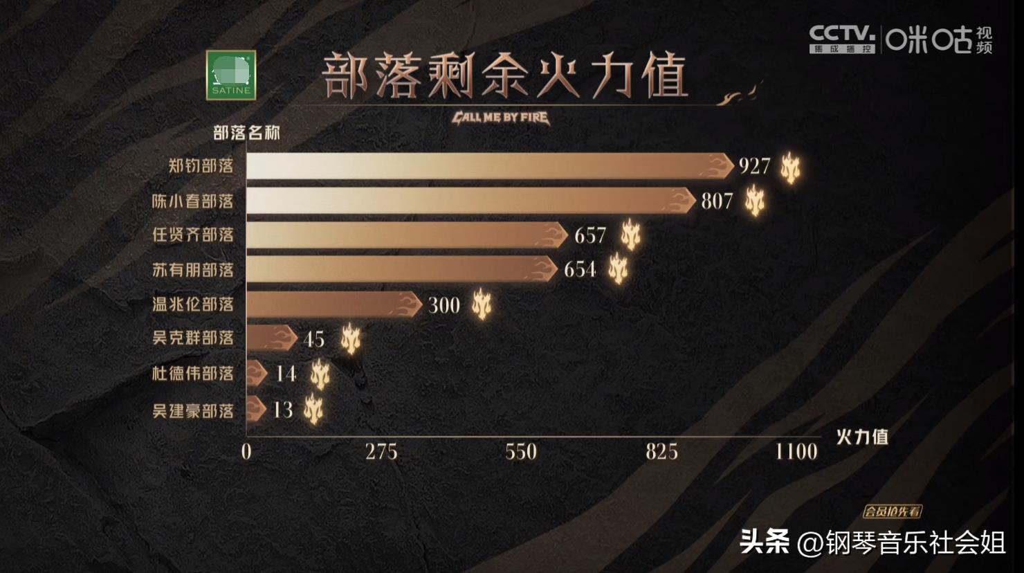 虽然任贤齐部落剩下的火力值还是排在第三名,但是他们部落是用300火力值拿到一首没人选择的《世界第一等》。