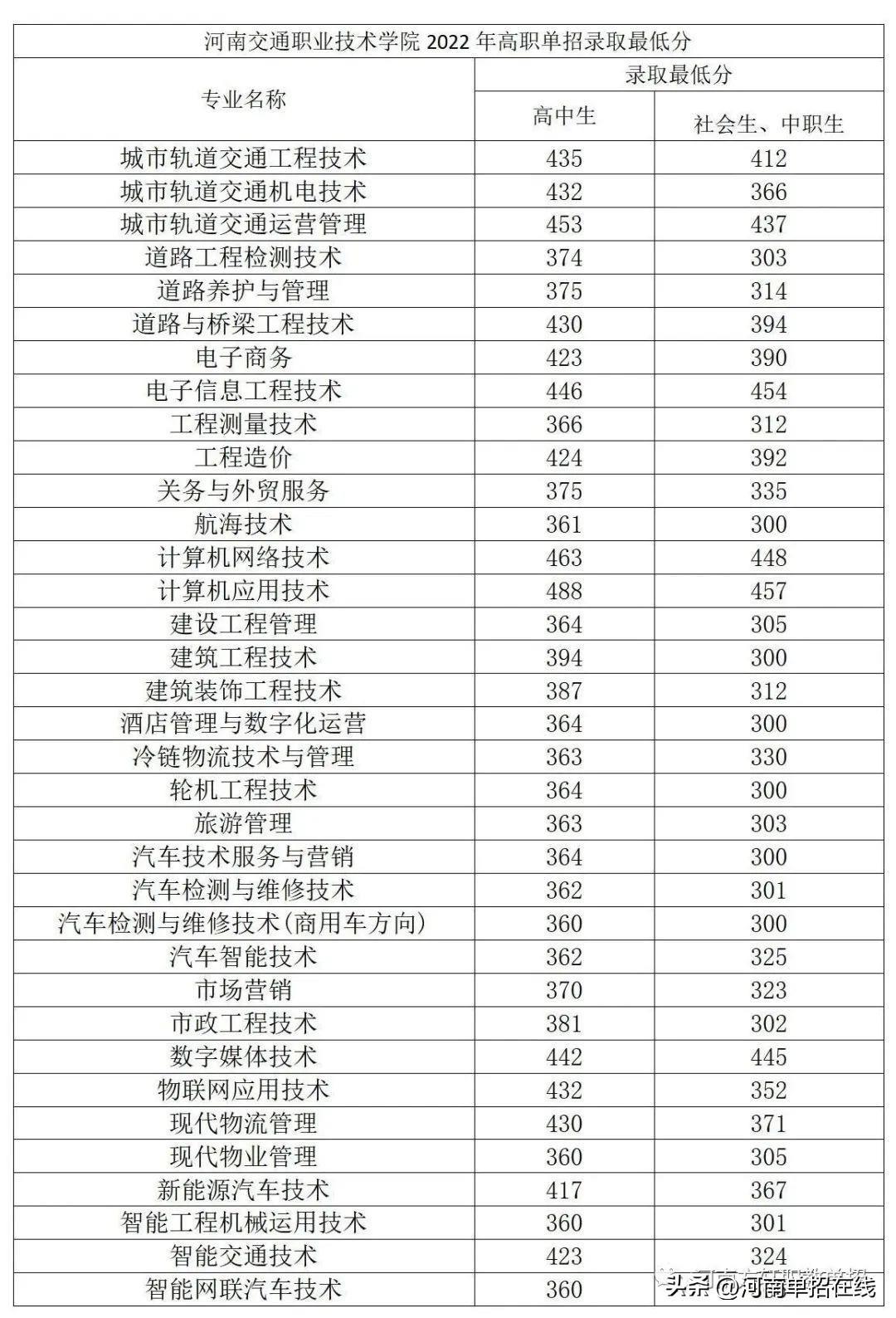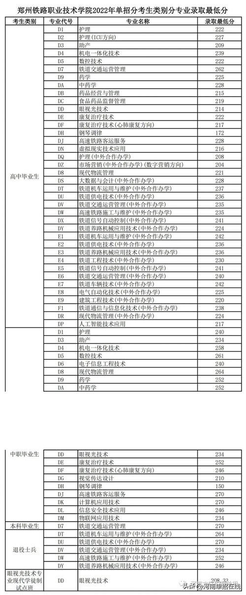 郑州铁路职业技术学院2022年高职单招录取分数线
