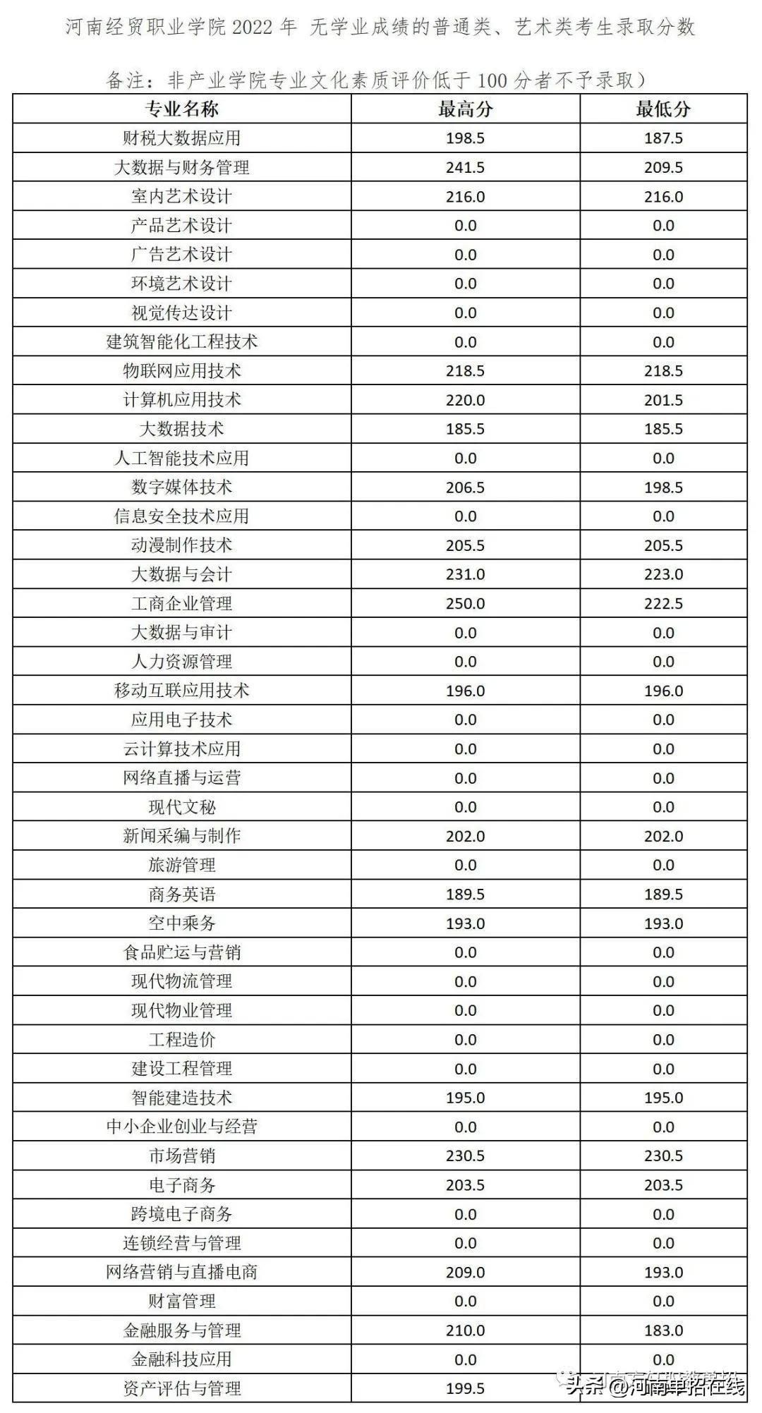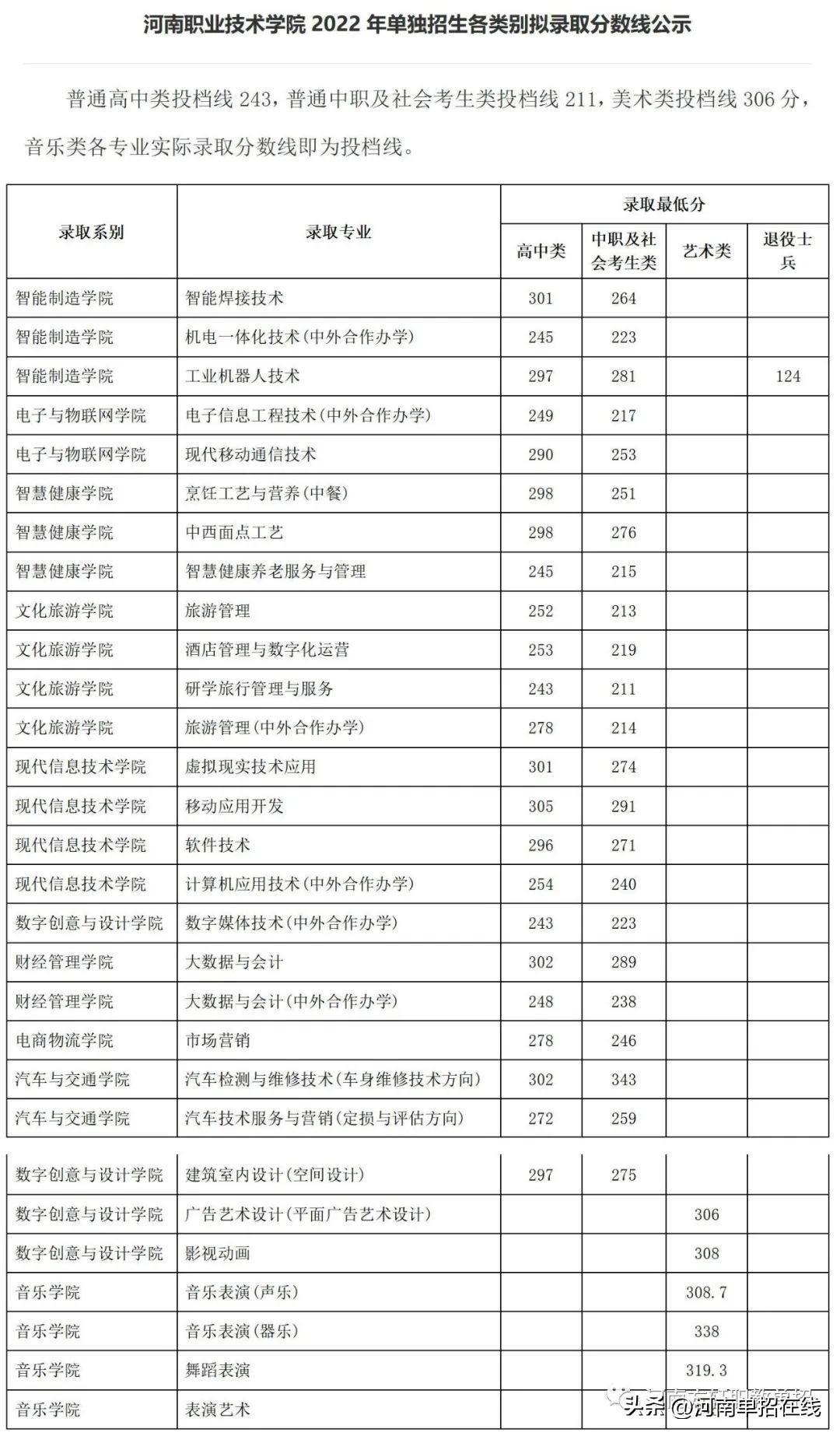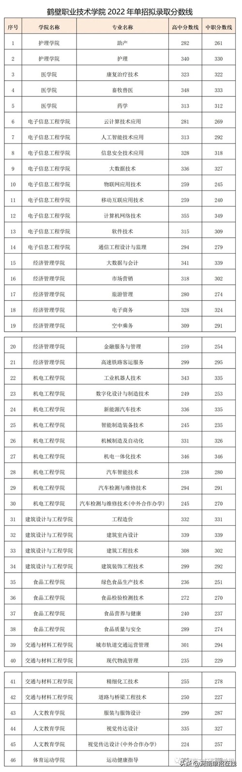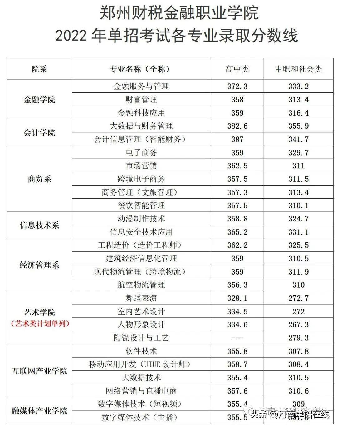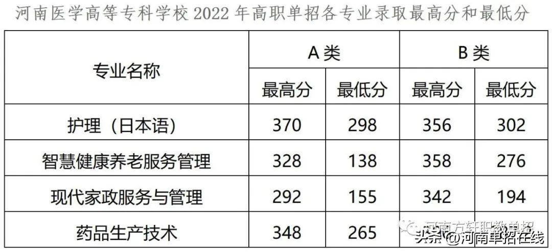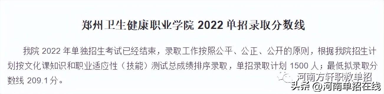 郑州卫生健康职业学院2022年高职单招录取分数线