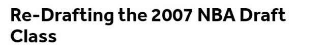 北京时间4月18日,前几篇文章我们聊过02,03,04,05,06,NBA选秀。而这篇文章,小编给大家聊一聊2007年NBA选秀顺位。就在刚刚没多久,著名体育媒体Bleacher Report也称为B/R,重排了2007年选秀顺位。下面,我们来一起看看B/R给出的这份选秀名单的前五位都有谁?也看看昔日的状元奥登又排在什么顺位?好了,话不多说,我们来看看这份排名情况。