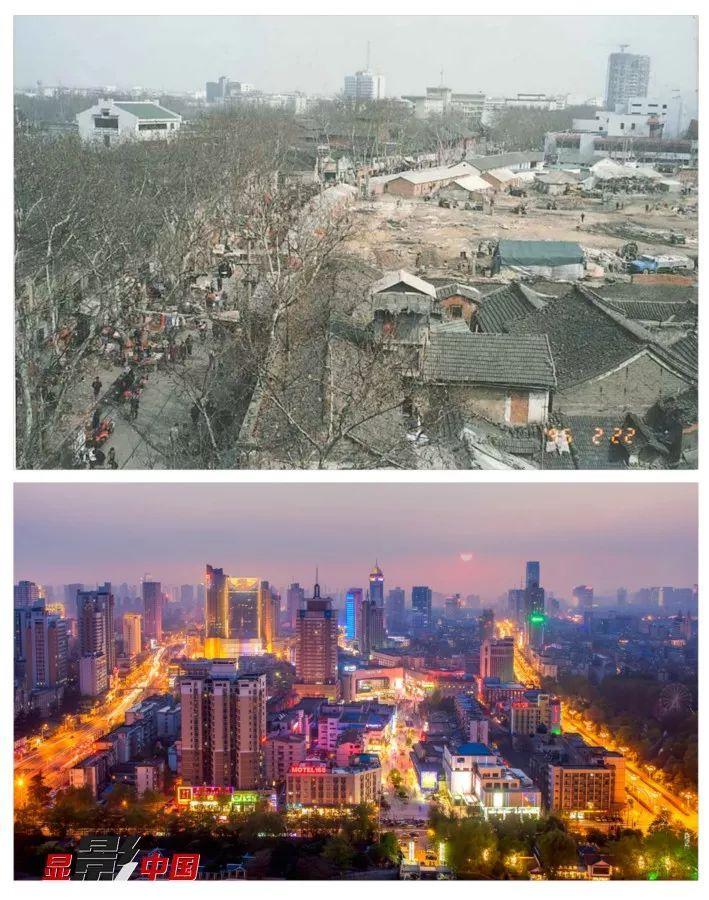 改革开放40周年,城市发生了翻天覆地的变化,显影中国选取一幅幅新老照片的对比,聚焦了合肥知名地标数十年的变迁历程,有的是多位作者合稿共筑一组作品,有的是一位作者20年、30年甚至是50年如一日,于同一地点用同一角度记录了安徽第一路——长江路、淮河路、胜利路、百货大楼、合肥火车站、天鹅湖、城隍庙、包公园、金屯道口、三孝口、合肥电厂等城市元素的变迁。上图:九十年代初长江中路;下图:2017年底经拓宽改造后的长江路。作者:宋业国(上)、王牌(下)