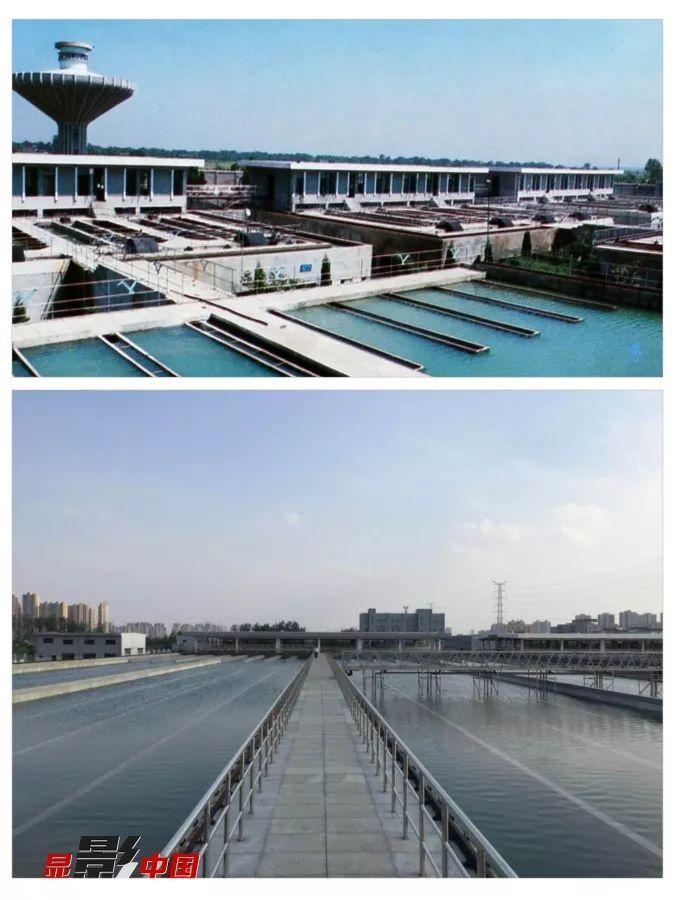 上图:上世纪90年代四水厂原滤池和沉淀池;下图:2018年4月新三水厂正在进行通水前的调试