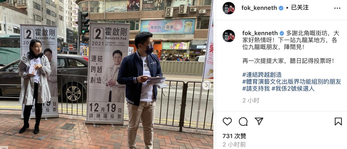 近日霍启刚正在参加lfh换届选举,他是体育演艺文化及出版界的候选人,19日是投票日,在这之前他也没有闲着,带着自己的家人在香港的各个区给自己拉人气。
