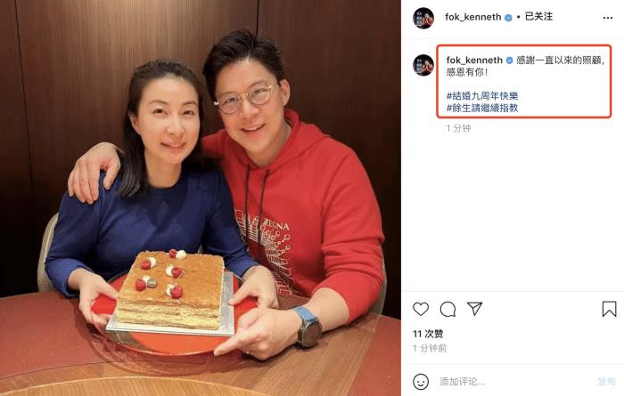 上个月两人庆祝了结婚9周年,手捧蛋糕出镜,霍启刚将郭晶晶搂在怀里,幸福洋溢。