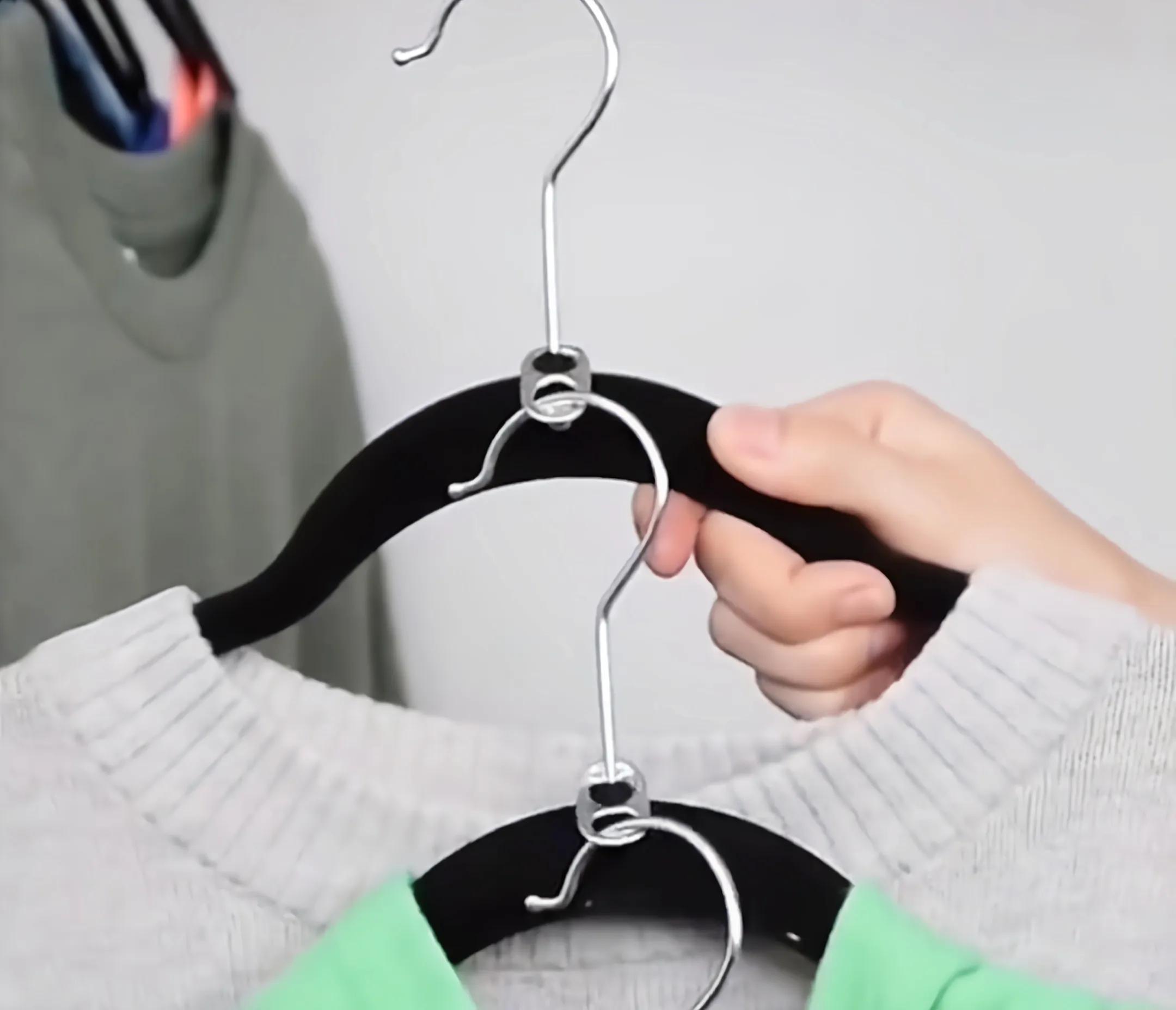 2、衣服太多挂不下,喝完的可乐瓶盖上的拉环取下来扣在衣架上,这样方便收纳又节省空间。