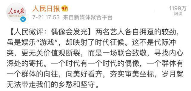人民日报也出来发文表示:一个时代有一个时代的偶像,一个群体有一个群体的向往。毫无疑问周杰伦对于很多人来说已经不仅仅是一个流行歌手,而是代表了一群人或者是一个时代的人的青春。
