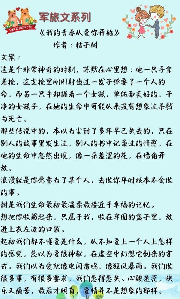 推荐七部军旅言情文,以你军装衬我婚纱,与君同在一世欢喜