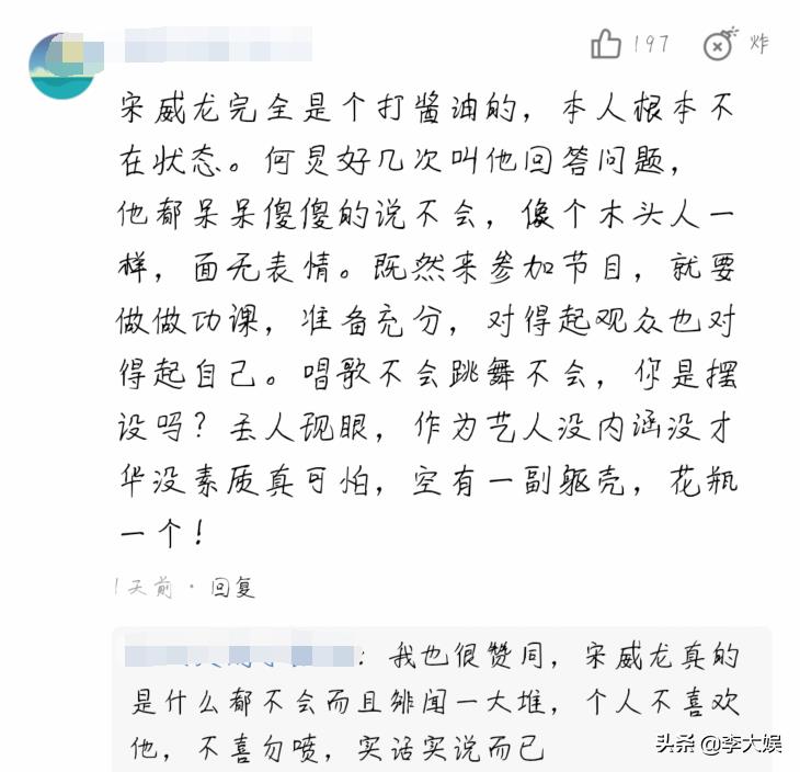 其实,虽然近年网络综艺对传统电视领域冲击很大,但《快本》依旧是明星宣传作品的首选之地,新人能上节目更是十分难得,宋威龙错过表现自己的机会,真的有些让人遗憾。