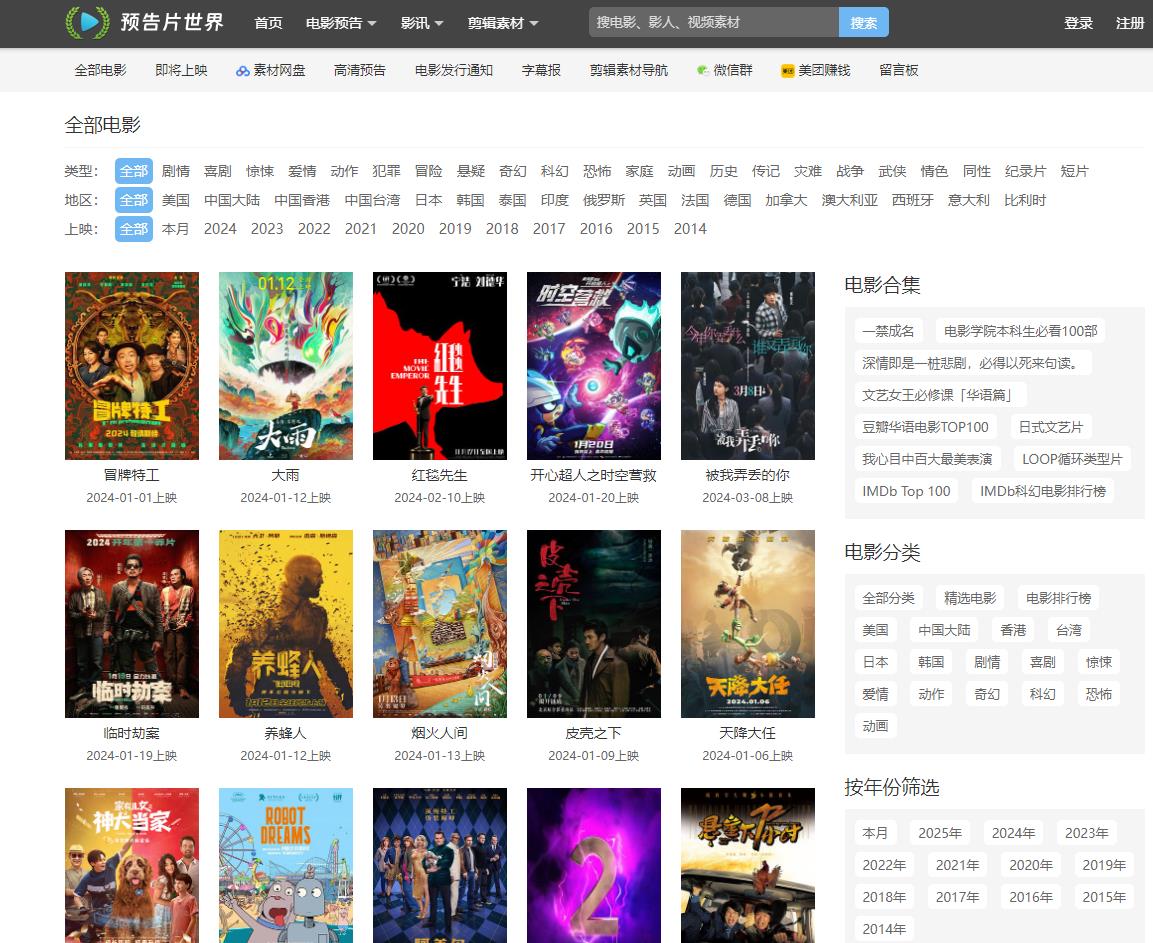 预告片世界是一个专门下载电影预告片的素材网站,这里提供最新的电影预告视频下载、影片官方素材网盘和发行通知信息,是资深影迷、自媒体创业人、尤其是做影视领域剪辑创作者的必备视频素材网站。