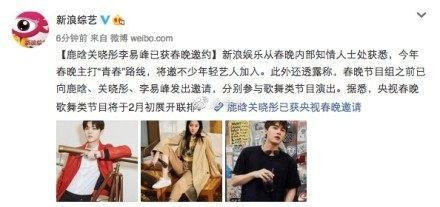 据悉,春晚向鹿晗,关晓彤,李易峰被春晚邀约,但是网友貌似对这个消息并不买账。