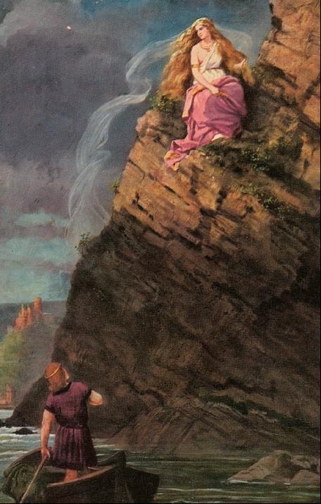 很久以前,莱茵河畔生活着一位美丽的姑娘,她叫罗蕾莱,长发披肩,明眸皓齿,温柔娴雅,还有一副曼妙的歌喉。一天,她的心上人离她而去,杳无音讯,痴情的罗蕾莱望眼欲穿,每见夕阳,她总会在莱茵河边的峭壁上一边梳着长发,一边遥望着过往的船只低声吟唱,倾诉对心上人的思念,盼望心上人能在船上出现。如泣如诉的歌声充满了强烈诱惑,路过的船夫听了,无不失魂落魄,痴迷的朝歌声而去,浑然忘记水下的险礁,一个个葬身鱼腹,酿成悲剧。