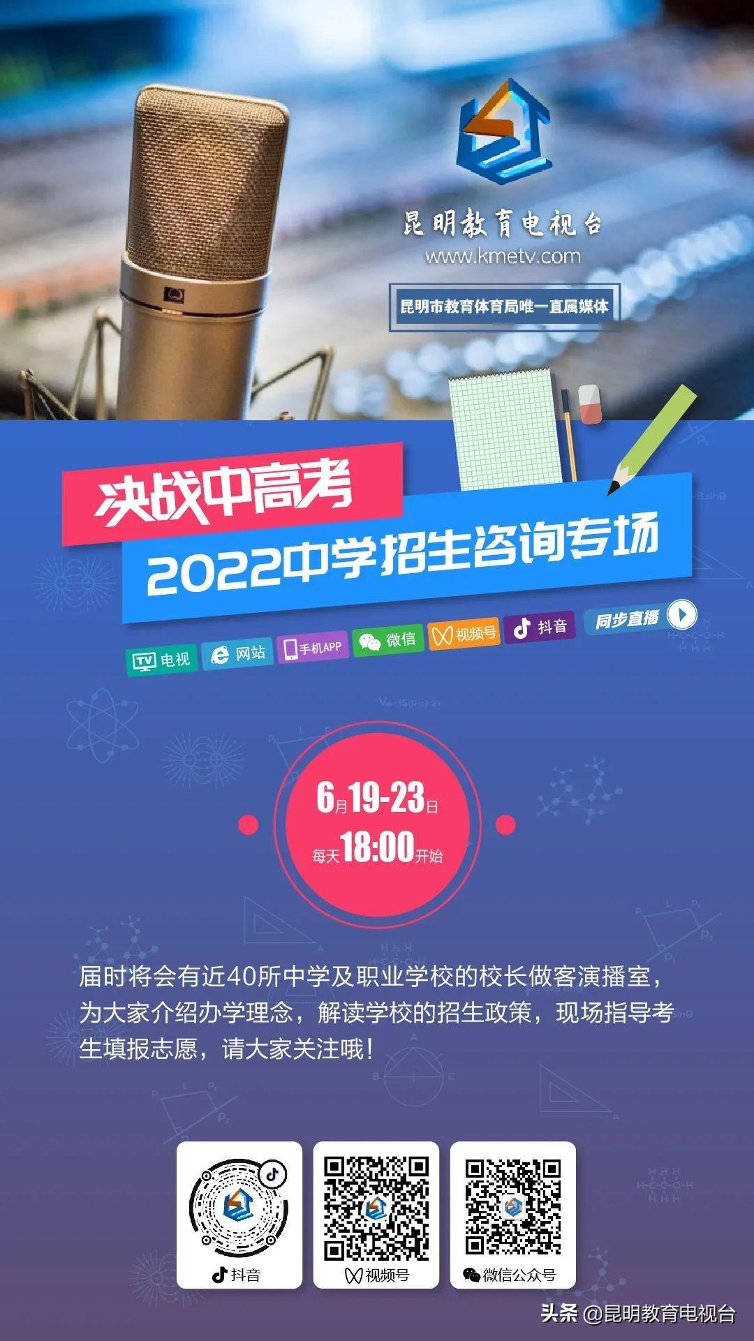 届时昆一中、昆三中、昆八中、昆十中、昆一中西山学校、安宁中学、昆十四中、昆十二中、云师大附中呈贡校区、云大附中呈贡校区、云南民族大学附属中学等40余所中学和中职学校的校长将做客直播间,现场解答考生和家长们的问题。让考生和家长“走进”校园,在最短的时间内认识、了解各所学校的招生情况、办学理念、师资力量、校园文化等,挑选出最适合自己的学校,实现自己的理想。