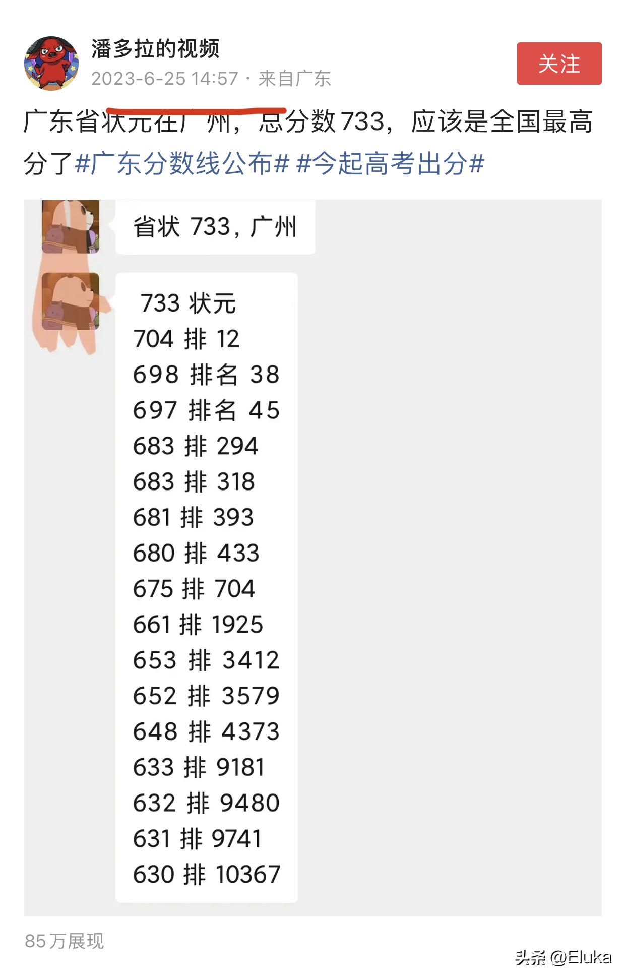 这个作为自媒体我个人深信广州网友的渠道信息!广东高考物理状元极有可能是733分,但是不是广州我持怀疑态度。