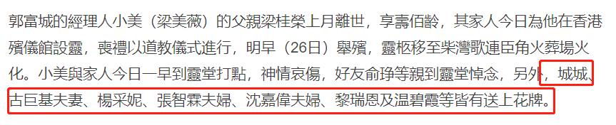 知名经纪人小美丧父!郭富城送花圈到灵堂致哀,相识30年情同家人