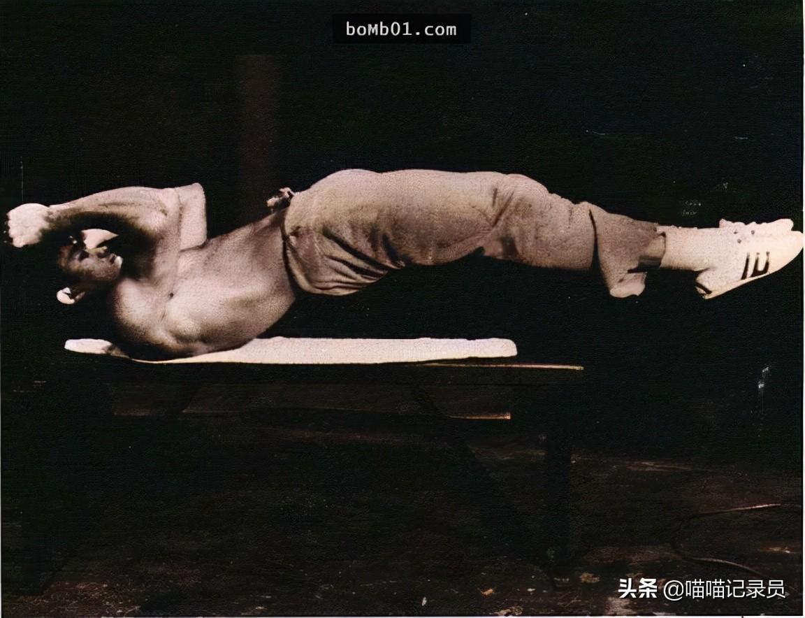 ▼3.虽然李小龙因为本身重量很轻,最重大概只能举起75kg,但他能做50多次以上的单臂引体向上,还可以在背台放60公斤的状况下做伏地挺身。