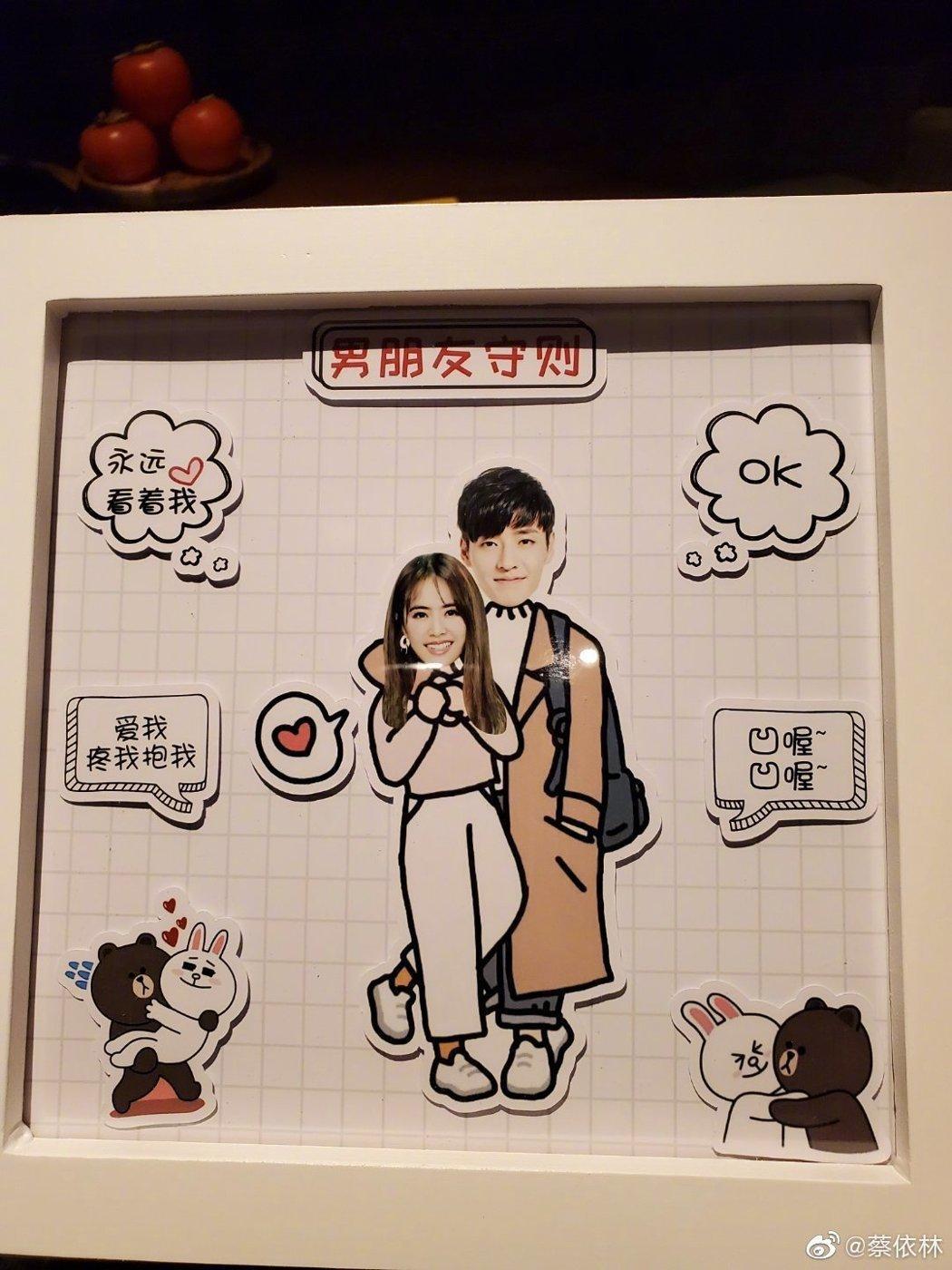 最近蔡依林迷上韩剧《山茶花开时》中的男主角,是由姜河那饰演「黄龙植」一角,还大方在脸书公开表示「谁可以帮我转达龙植, 请他办完案,这裡有黄2c跟后台证的部分要给他!!」、「喝杯咖啡不为过吧」、「新任脑公」,而贴心的粉丝还手工製作了两人的合照送给她,只见男方环抱着她,甜蜜放闪,没想到在担任五月天演唱会嘉宾的这晚,蔡依林在微博分享收到的礼物,开心的直呼「甜死我了~谢谢粉丝宝!祝大伙好梦连连」。