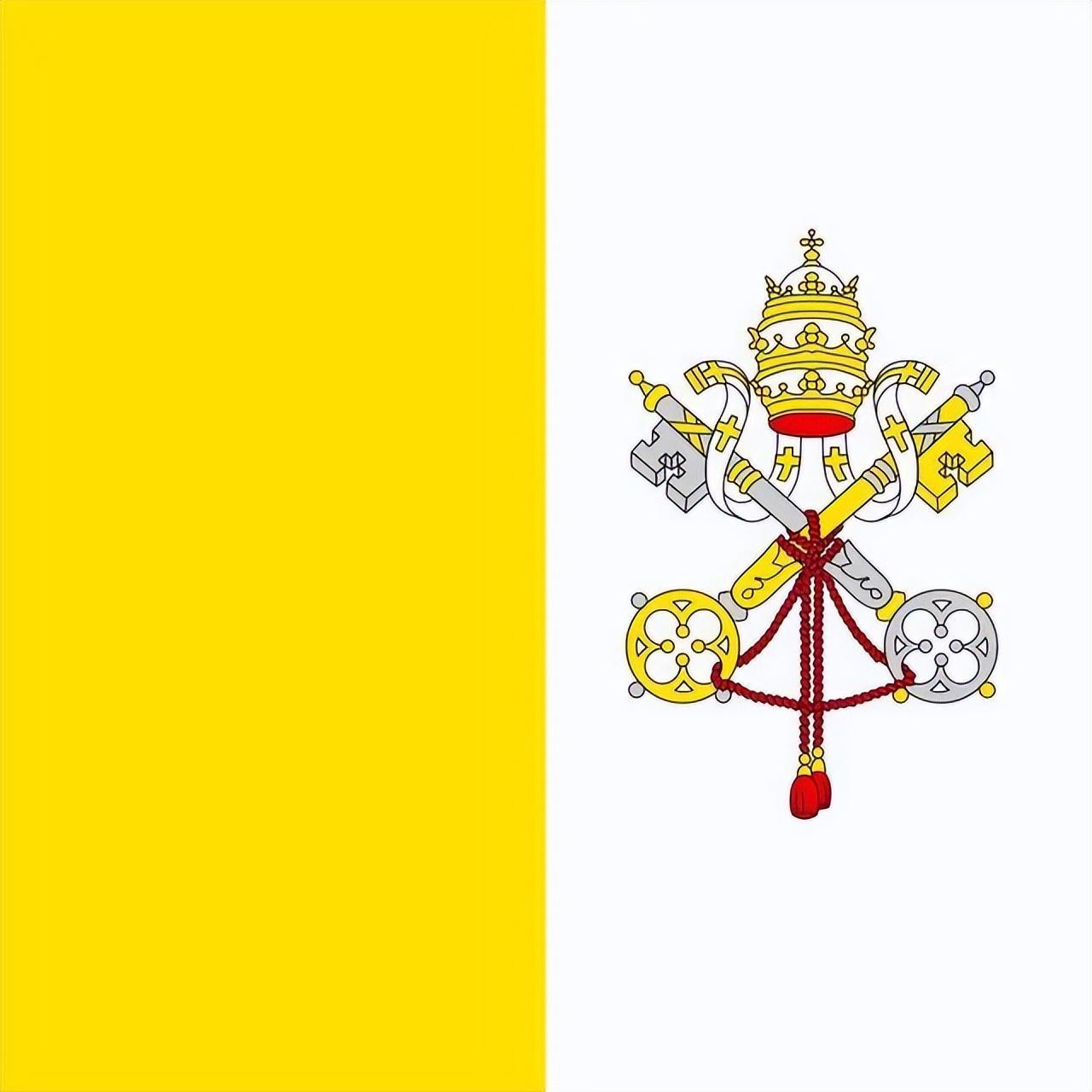 国旗:由两个面积相等的竖长方形组成,靠旗杆侧为黄色,另一侧则为白色,绘有教宗的牧徽。