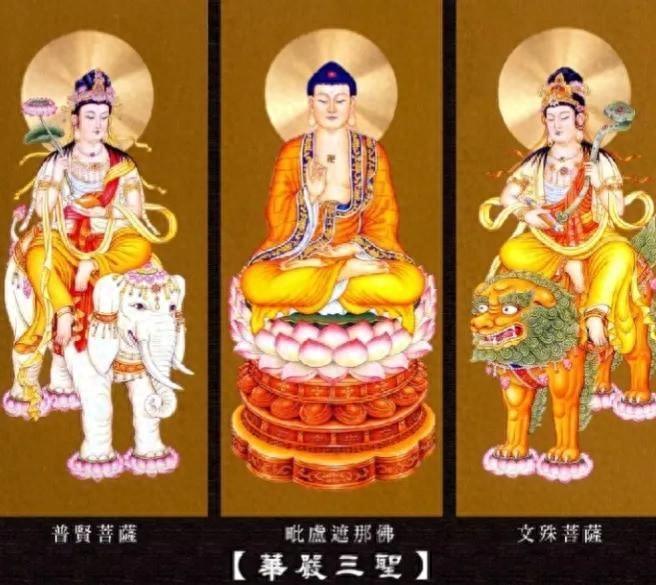 华严经论卷三中说,佛果为不可说,故以文殊、普贤二菩萨为说主,文殊劝修,成法身之本智,普贤大行,成差别智之行德,故以文殊、普贤配合毗卢遮那佛,共为华严三圣,利乐一切众生。