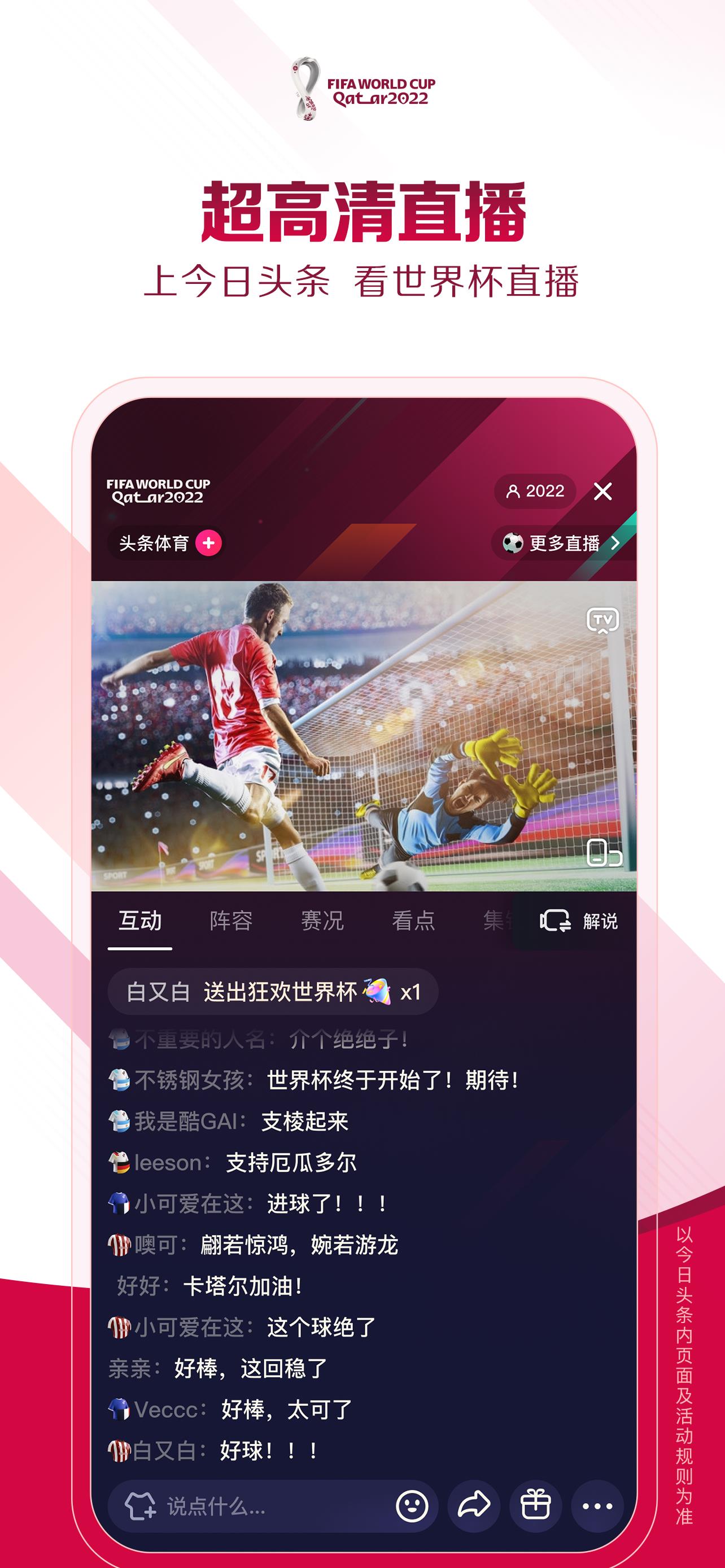 此次足球盛事,今日头条将带你全程体验沉浸式高清赛事直播,