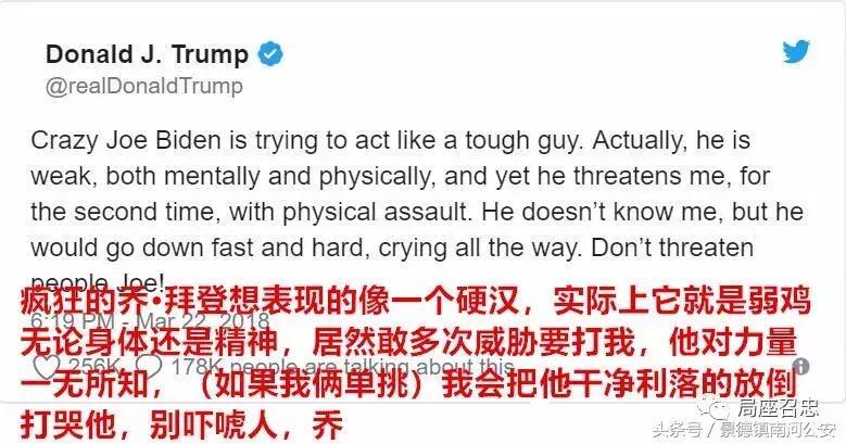 71岁特朗普与75岁前副总统拜登“约架”:我要揍哭你