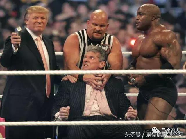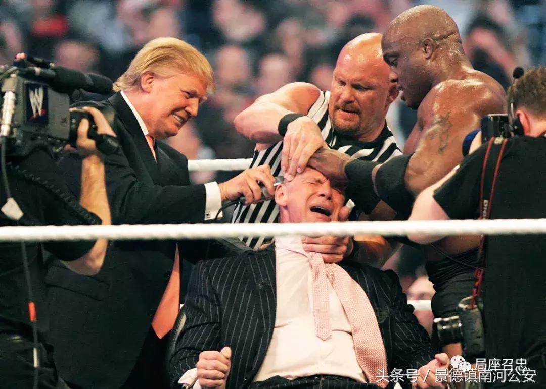至于那两个Gif(动图),倒不是电脑合成的,特朗普确实“打过人”,只不过那是美国世界摔角娱乐公司的一场表演秀,为了营造节目气氛,剧本提前写好了。