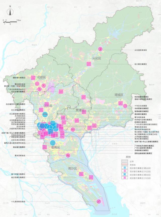 广州市餐饮聚集区布局规划图。图片来源:《广州市餐饮业网点空间布局专项规划》