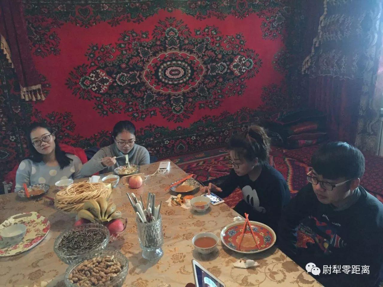晚上,我们一起品尝嫂子做的拉条子,大家围坐在一起聊家常,学习十九大报告、《新疆维吾尔自治区惠民政策明白册》(2017年版),艾合买提12岁的儿子麦吾兰江担当翻译,给自己的父母宣传。我们一起畅聊近年来国家、新疆、尉犁县的大发展大变化。说到激动之处,艾合买提眼中亮亮的,对未来的生活充满期待。艾合买提大哥还跟我们分享了自己的爱情故事,讲述了他如何娶上了美丽的买热木尼沙·提力瓦尔地……就这样,在欢声笑语中,充实而忙碌的一天结束了,我们的兄弟情更深了。