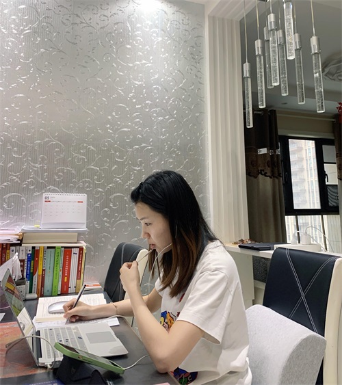 镜头三:居家信号差 她“征用”了孩子的卧室和书桌