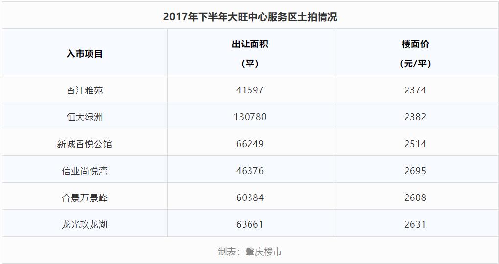 2017年下半年大旺中心服务区土拍情况