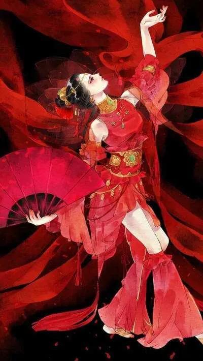 笑声中,第三个歌伎也上了舞台,她身穿红裙,手拿团扇,开口唱得是: