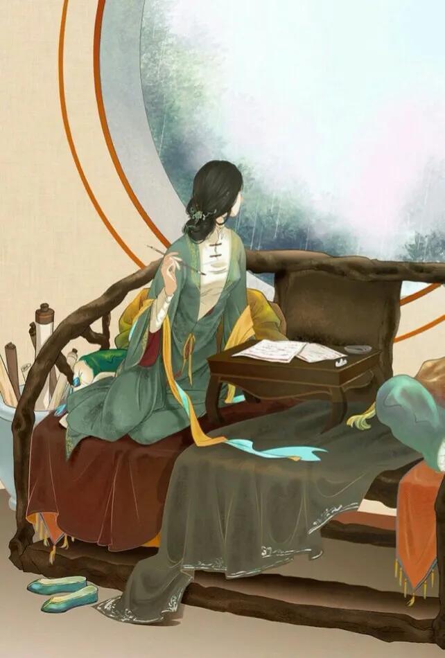 音乐声响起,又一个身穿绿色裙子的歌伎上场了。她玉手轻抬,慢挽发髻,一开口,声音低沉,让人黯然销魂,她唱道: