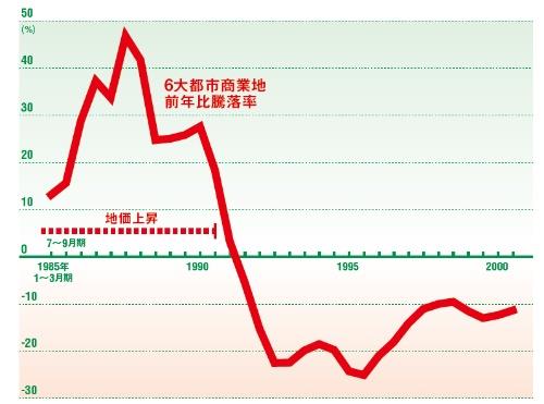 日本6大都市商业用地的地价,从90年开始跳崖式下跌