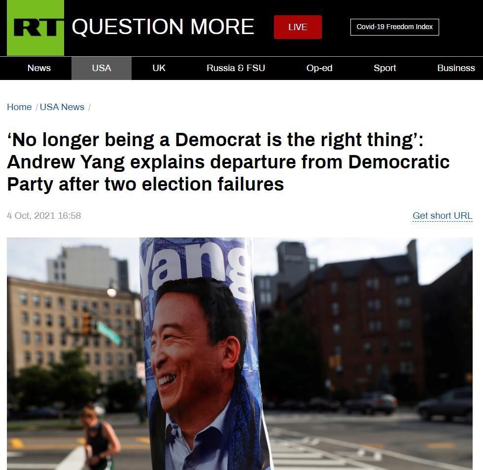 2021年10月5日,福斯克新闻网报道,杨安泽在退出民主党一天后,在5日宣布成立了前进党政治行动委员会。