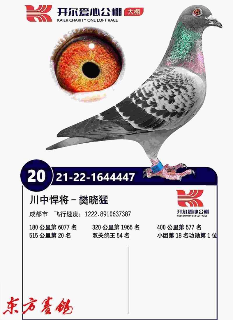 这些令人神往的成绩,让其他参赛的鸽友连连惊呼:樊晓猛的鸽子有如神助,如同天兵天将,在接下来的2020年成都市的地方赛事中,樊晓猛仍然保持高水平的发挥,抢夺了一连串的高位赛绩。