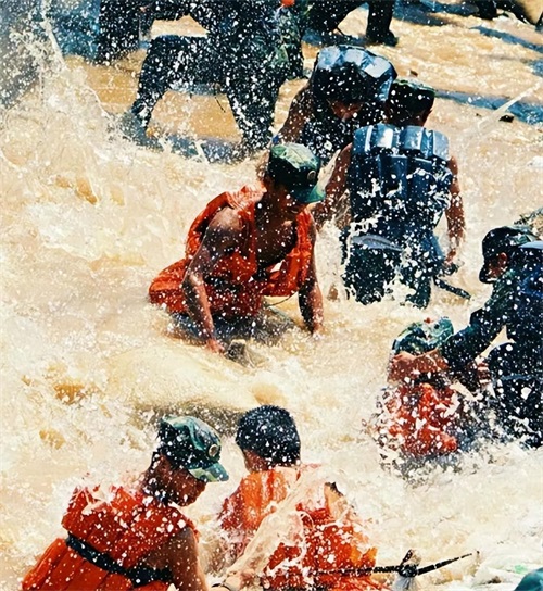 下水的共计200名士兵,用时5小时围成了一道栅栏墙,减少了水流的速度,但水下的旋涡迅猛。稍一不留神就被卷进去,即便这样也没看到任何一个战士退缩。